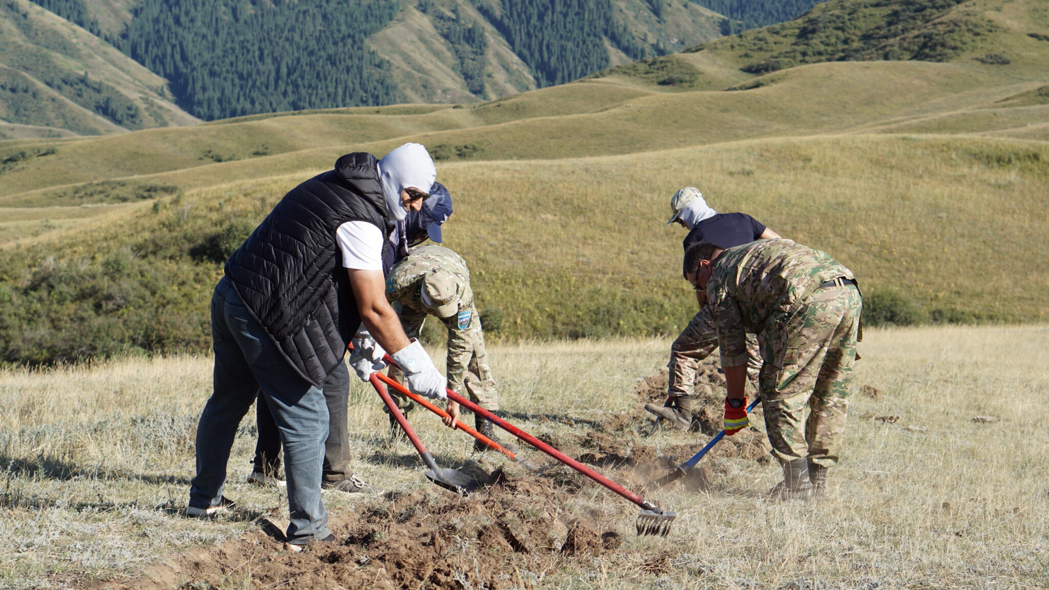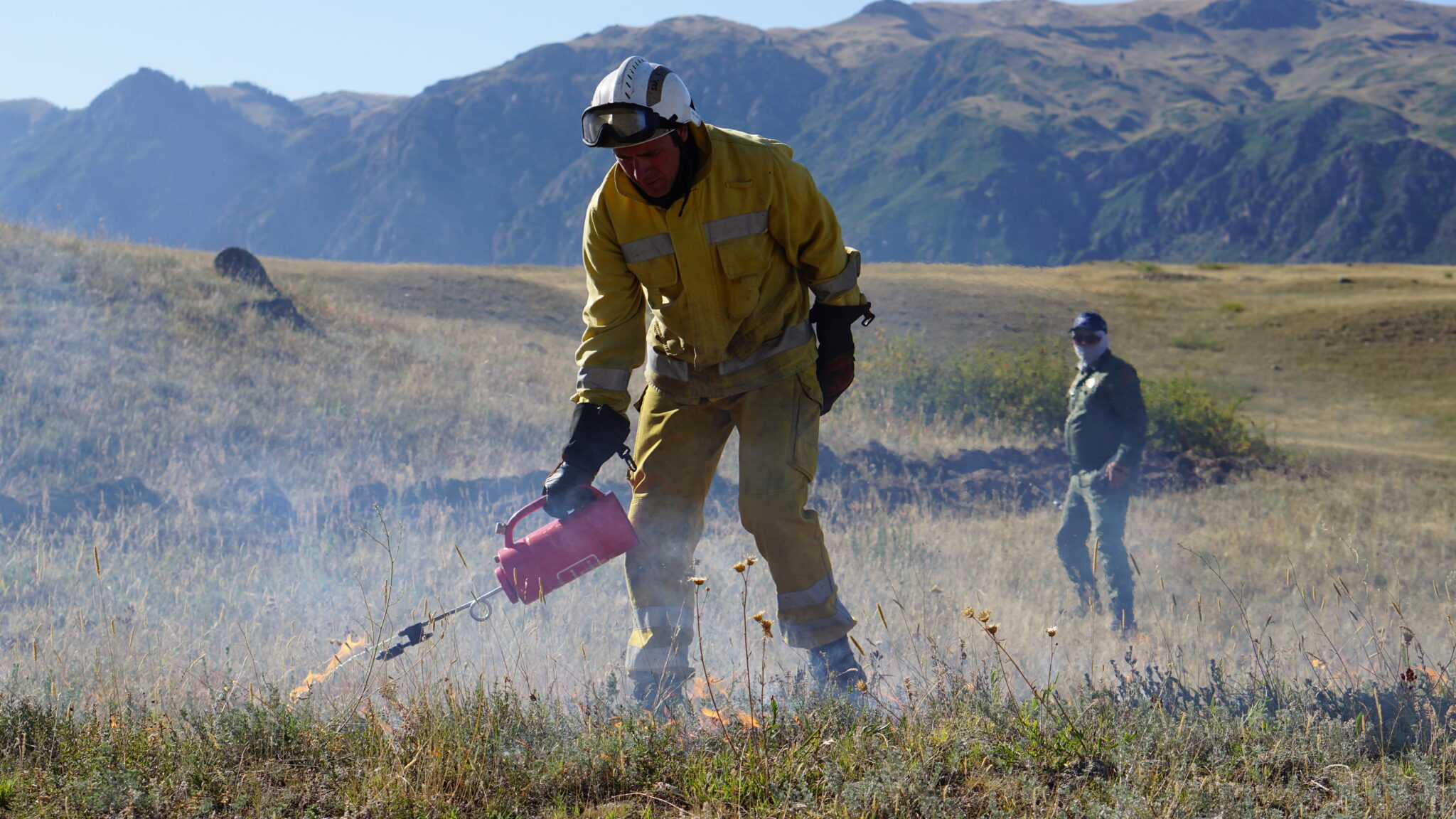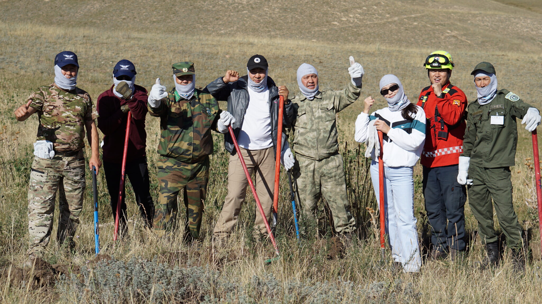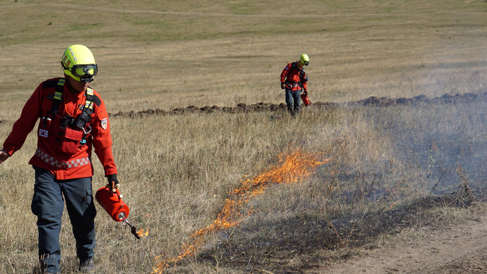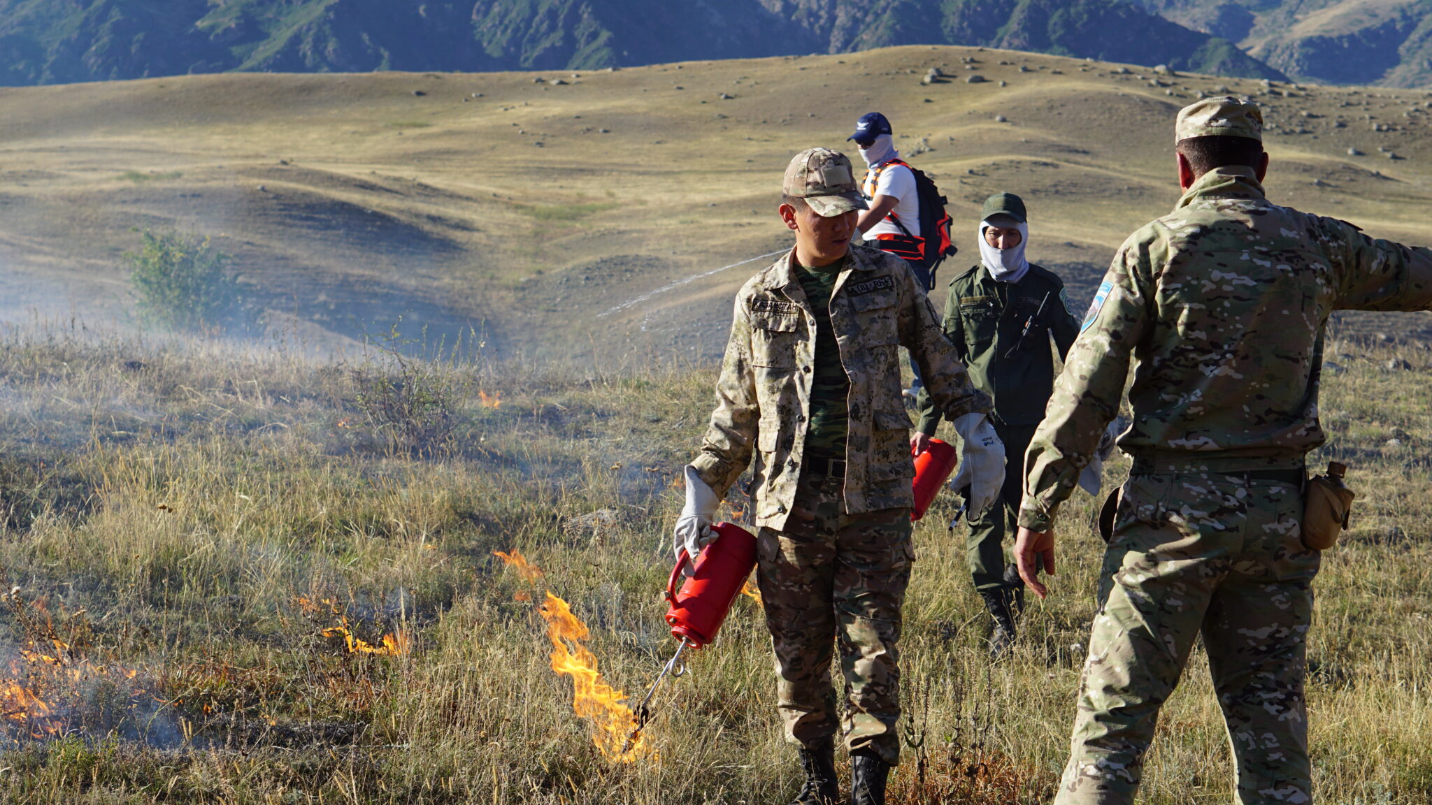 Under the guidance of experts from France and the Republic of Korea, participants practiced constructing firebreaks to block fire spread and redirect flames. Using various hand tools, they experienced firsthand the challenges of working in the dry and rocky soils typical of Central Asia’s landscapes. The exercise demonstrated how pre-established firebreaks play a crucial role in slowing down or preventing fire progression, with participants observing clear contrasts between protected and unprotected areas.