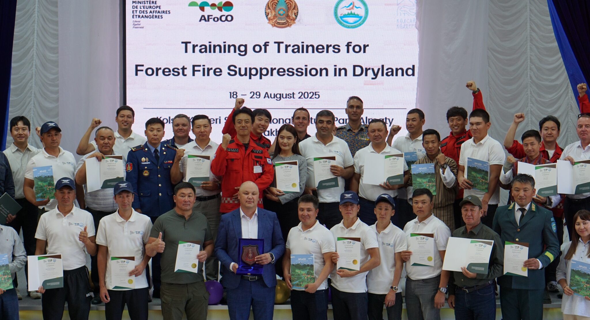 The Training of Trainers on Dryland Forest Fire Suppression (TOTFFS), jointly organized by AFoCO RETC and the Committee of Forestry and Wildlife of Kazakhstan with the support of the Ministry of Europe and Foreign Affairs of France, was successfully concluded on 29 August 2025.