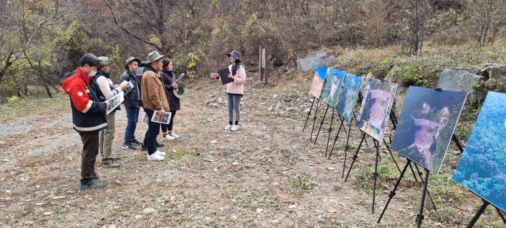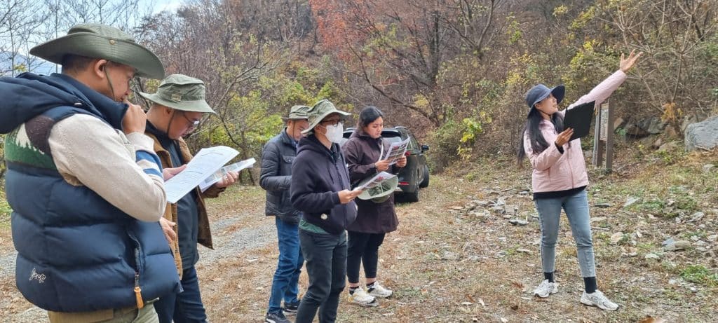 After visiting the arboretum, Fellowship Officials visited the site of the “Dohwadamri Forest Ecological Restoration” project, which was successfully implemented between 2016 and 2018. Central Regional Office official Ms. Lim Sora shared valuable experiences about how the project was successfully implemented in 1 ha of degraded land caused by bedrock extraction. She also gave valuable advice on the feasibility of implementing this effective method in degraded areas caused by mining activities.