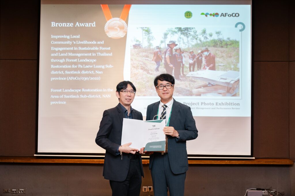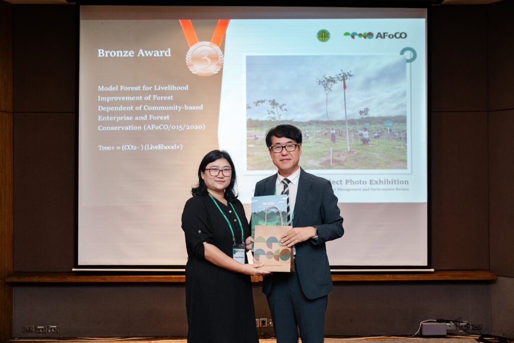 The 1st AFoCO Project Photo Exhibition was held concurrently with the workshop. Participants explored the projects through photos, and the winners were selected by combining the jury assessment and public vote. As a result, the Gold Award was presented to the project titled Innovative Solution for Climate Change and Biodiversity Landscape Strategy to Support SDGs in Indonesia (AFOCO/023/2021). It received high scores from both public vote and the jury for its clear depiction of the project’s main activities. The Silver Award was honored to the project code AFoCO/038/2023 (Cambodia) and AFoCO/025/2021 (Lao PDR). The Bronze Award was given to the project code AFoCO/015/2020 (Myanmar), AFoCo/030/2022 (Thailand), and AFoCO/029/2022 (Philippines).