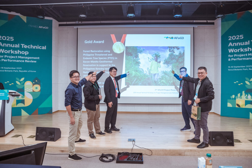 The ceremony was officiated by Mr. Sunpil Jin, Vice Executive Director of AFoCO, who presented certificates and prizes to the winners. The Gold Award was conferred to the project “Forest Restoration using Philippine Threatened and Endemic Tree Species (PTES) in the Bacon-Manito Geothermal Reservation in support of the Philippines Forestry Sector’s National Greening Program” (AFoCO/040/2023).