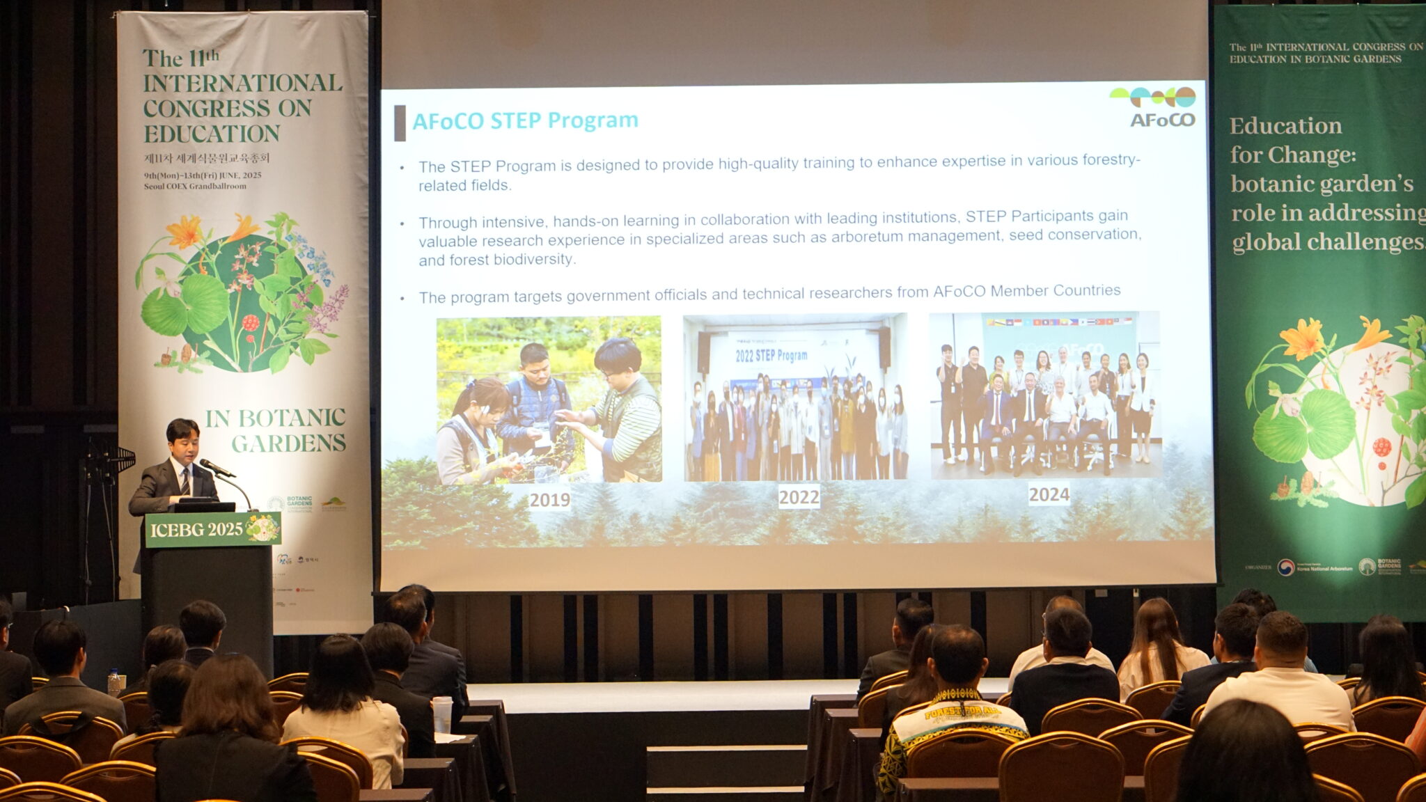 The Asian Forest Cooperation Organization (AFoCO), in collaboration with the Korea Arboreta and Gardens Institute (KOAGI), officially commenced the 2025 Science and Technology Exchange Partnership (STEP) and Keep Eternally Your Seeds (KEYS) Programs as part of the official side events of the 11th International Congress on Education in Botanic Gardens (ICEBG), held in Seoul, Republic of Korea. These programs invite forestry officials from AFoCO Member Countries including Bhutan, Cambodia, Kazakhstan, Kyrgyz Republic, Lao PDR, Myanmar, Thailand, and Viet Nam- as well as representatives from Samoa and Fiji (Oceania) and the Dominican Republic (Caribbean). The overarching aim is to strengthen regional capacities in forest plant biodiversity conservation, seed preservation, and arboretum-based education.