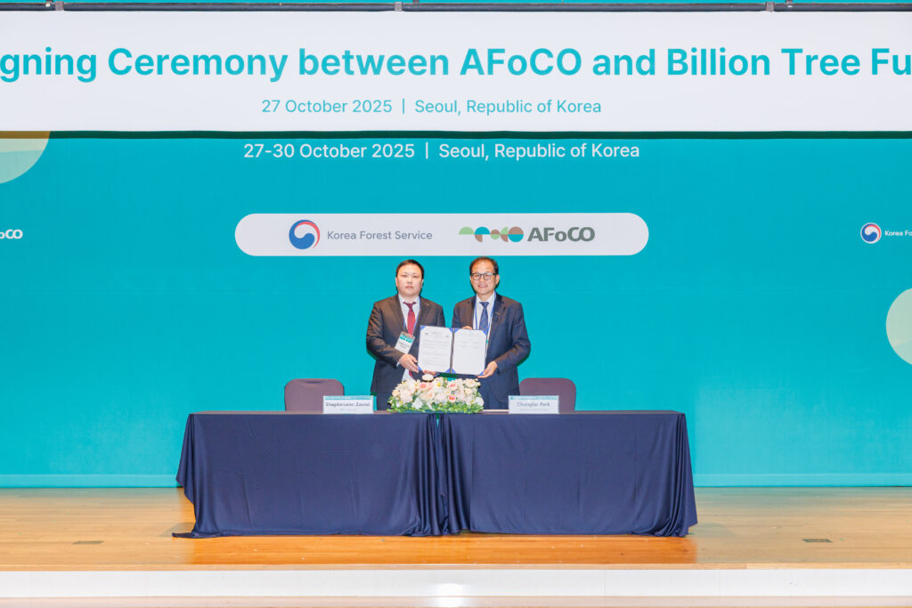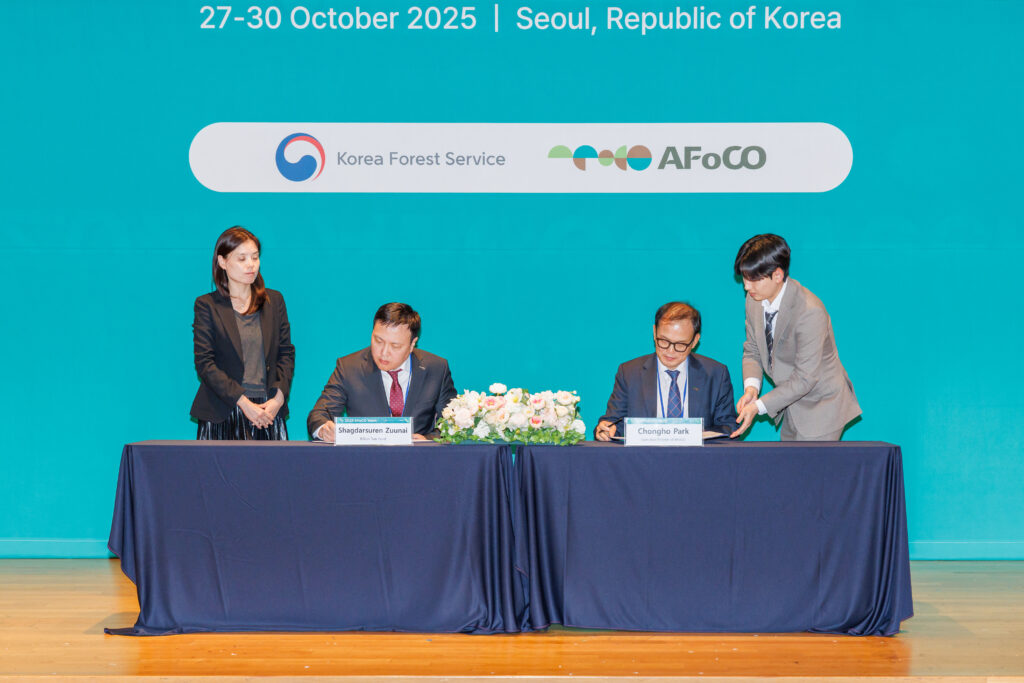 During the 3rd Friends of Asia and Asian Forests (FAAF) Forum held in Seoul, Republic of Korea, AFoCO signed a Memorandum of Understanding (MOU) with the Billion Tree Fund, strengthening cooperation on forest restoration, green finance, and climate resilience in Mongolia.