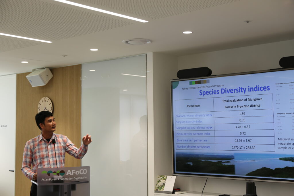 The final session focused on the concept note for the Mangrove Ecosystem Restoration Working Group, presented by Ms. Sena Aomjitr, Fellowship Official from Thailand. This was followed by an open-floor discussion during which delegates provided constructive feedback. Participants emphasized the importance of strengthening regional collaboration, harmonizing technical frameworks, and developing pilot initiatives under the Asian Forest Living Lab Initiative.
