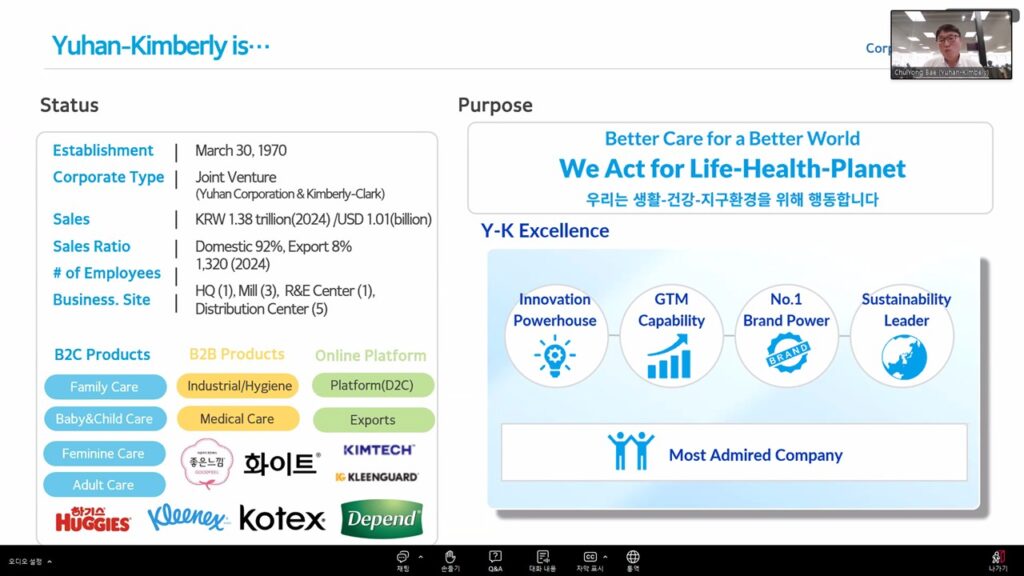 Mr. Chulyong Bae Lee shared Yuhan-Kimberly’s “Keep Mongolia Green” project, a long-term initiative combating desertification in Mongolia. He presented achievements in Tujiin Nars, where over 10 million trees have been planted across 3,250 hectares to restore degraded land. Mr. Bae explained how the project has evolved from tree planting to forest management and research, generating both environmental and socio-economic benefits for local communities.