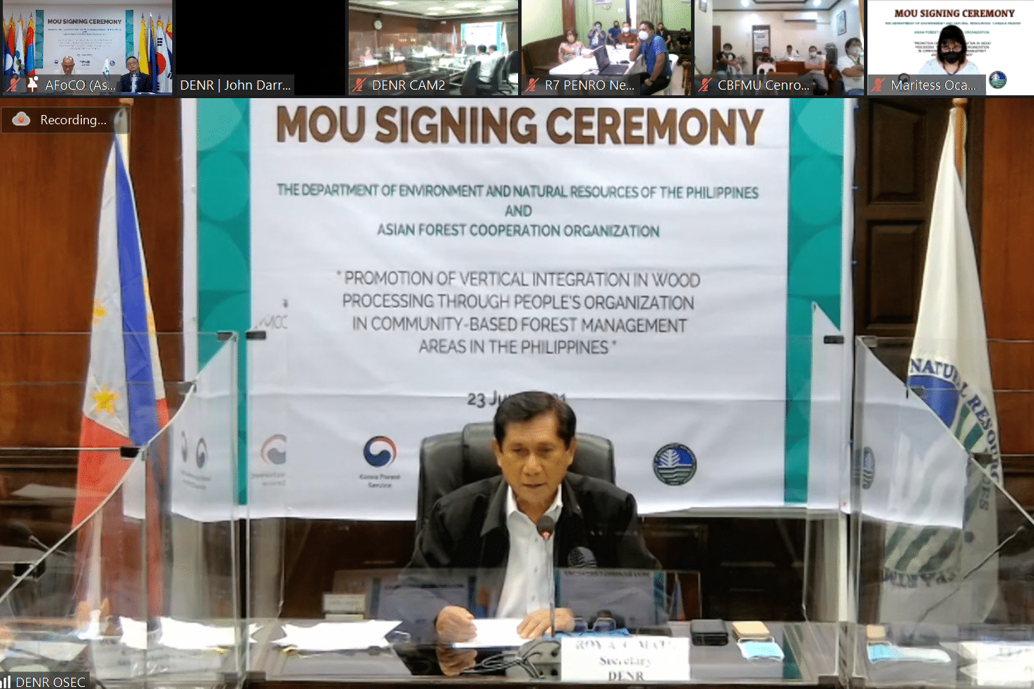 On 22 June 2021, AFoCO signed the Memorandum of Understanding (MoU) for the project, “Promotion of Vertical Integration in Wood Processing through People’s Organizations in Community Based Forest Management Areas in the Philippines” with the Department of Environment and Natural Resources (DENR) of the Philippines.