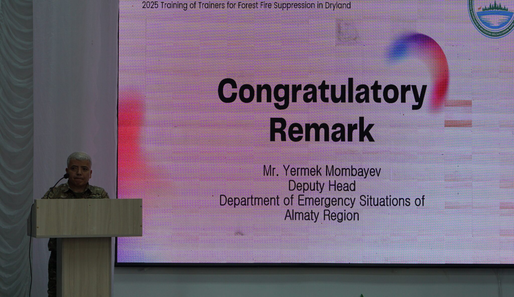 Mr. Yermek Mombayev, Deputy Head of the Department of Emergency Situations of Almaty Region, highlighted that over 95% of forest fires in the region are caused by human activities. He expressed hope that the training would provide valuable experience to forestry workers and strengthen local and international collaboration in fire management.