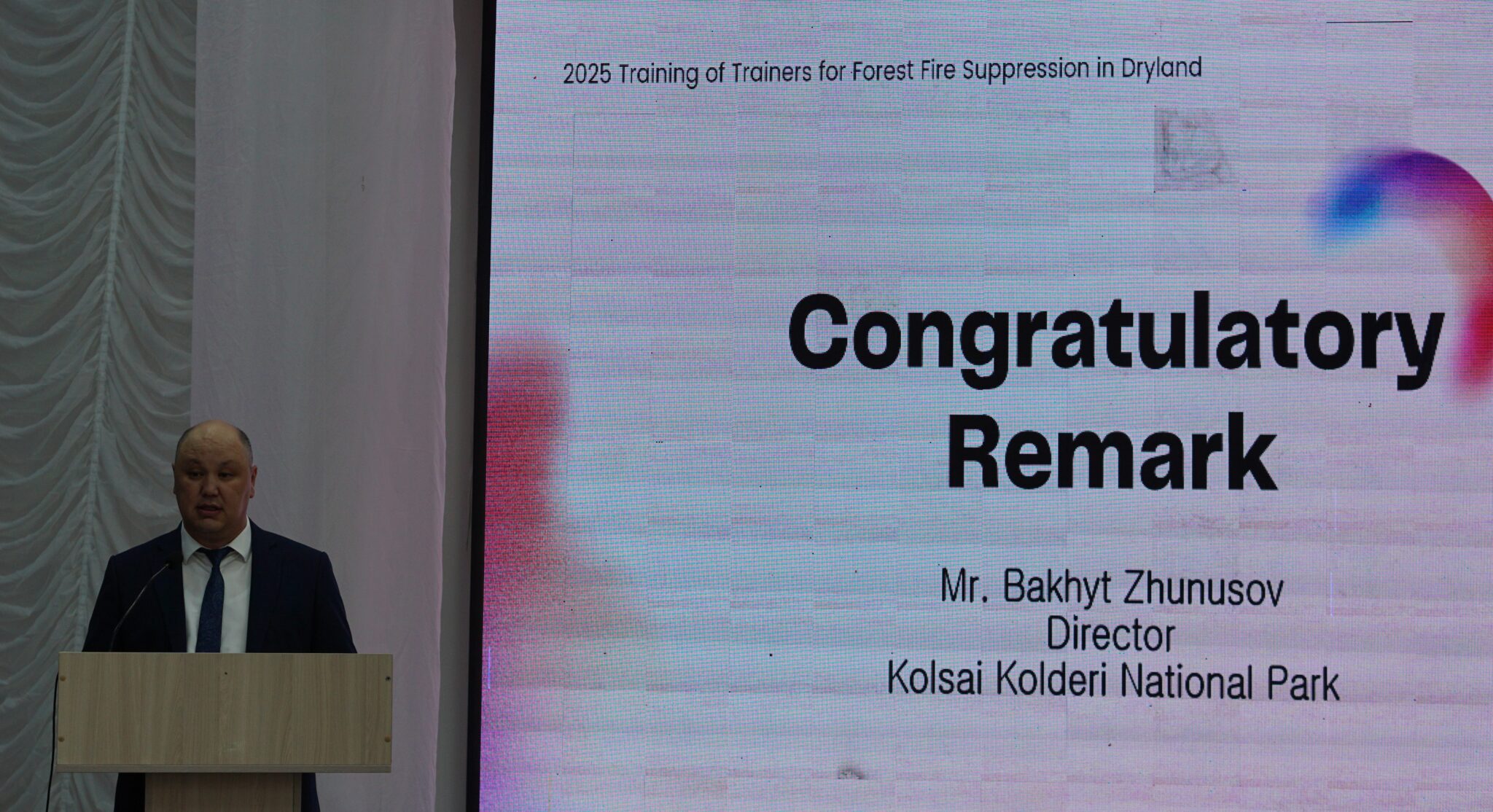 Mr. Bakhyt Zhunusov, Director of Kolsai Kolderi National Park, warmly welcomed participants on behalf of the host venue. He emphasized that protecting forests and ecosystems is a responsibility to future generations, and that the preparation of skilled trainers during this program would serve as a guarantee of safety and sustainability in the future.