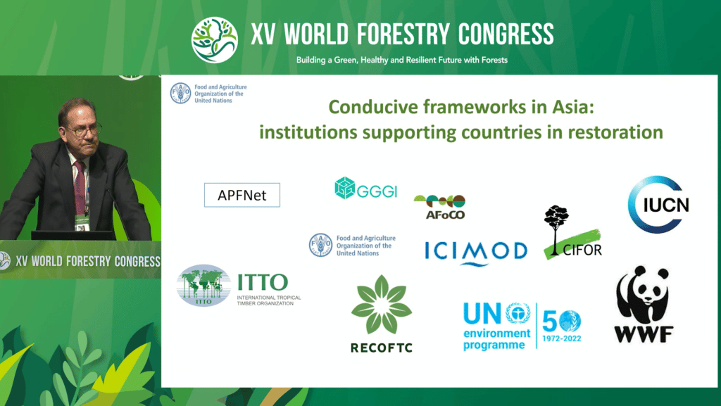 ‘Restoration also requires collaboration across sectors at national level, overcoming administrative boundaries,’ he said. ‘Restoration needs to be prioritised in national strategies, programmes and budgets and national collaboration needs to also cross borders, exchanging experience and knowledge, which is a part of the Landscape Partnership Asia and also the United Nations Decade on Ecosystem Restoration and the Regional Strategy and Action Plan for Forest and Landscape Restoration in Asia-Pacific of the Asia-Pacific Forestry Commission.’ Four hundred million hectares are available for restoration in Asia-Pacific, he noted.