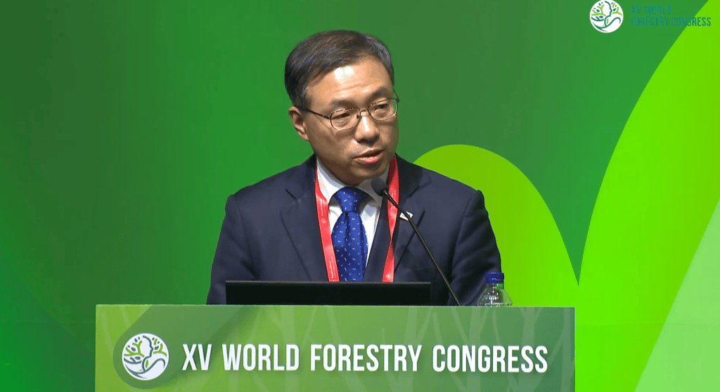 Eunsik Park, director general of the International Affairs Bureau of the Korea Forest Service, reinforced Minister Choi Byeong Am’s speech, emphasising that economic growth and environmental improvement can go together, based on Korea’s own experience.