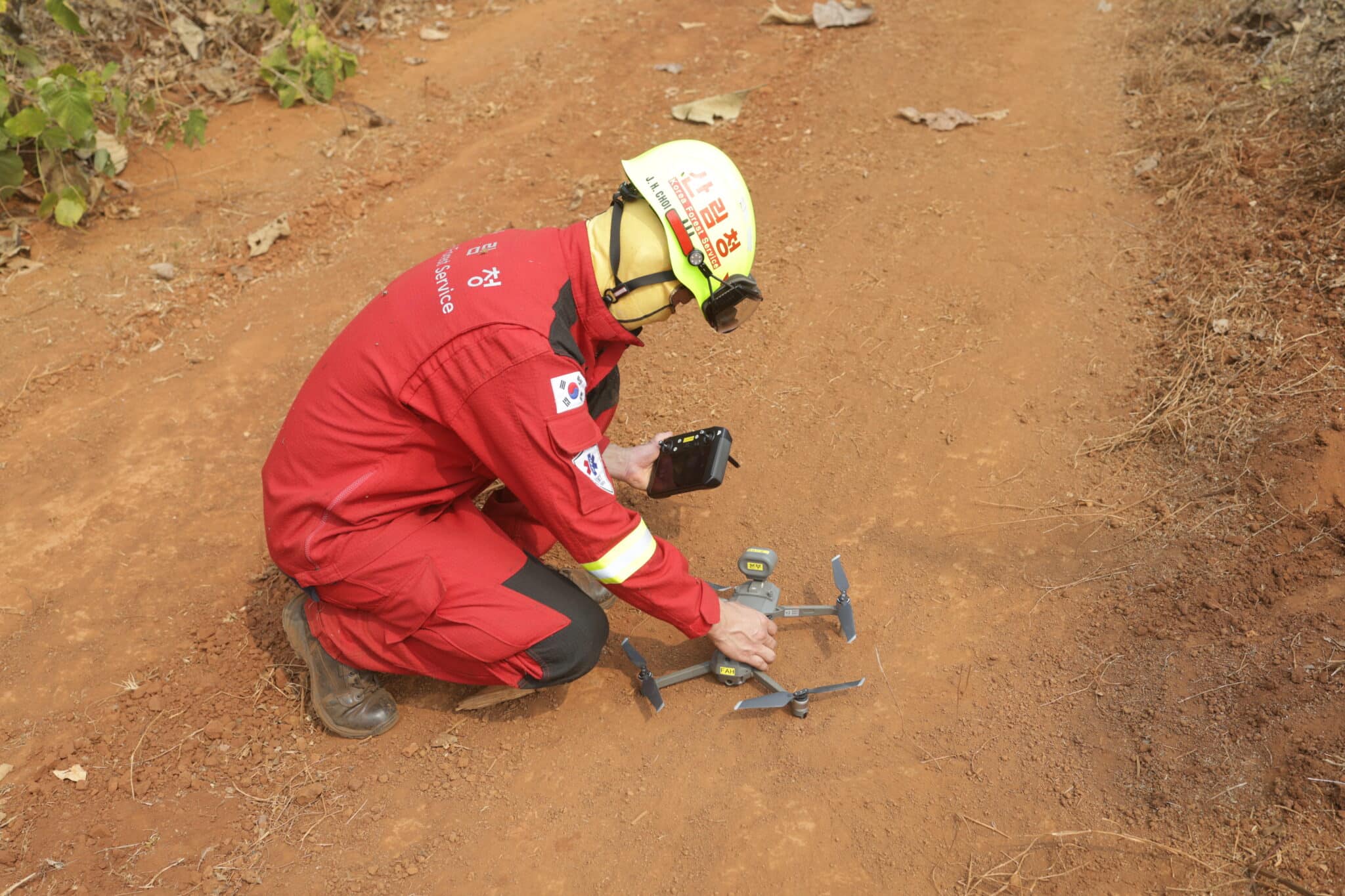 A key feature of the training was the Fire Line Construction Exercise, a crucial forest fire control technique. Under the guidance of experts from France, Korea, and Thailand, participants practiced constructing firebreaks to contain and slow the spread of fires. The exercise included hands-on training in terrain assessment, strategic fireline placement, and operational safety measures, ensuring that trainees developed the skills necessary to execute these methods in real fire conditions. Participants worked in rugged terrain conditions, using a combination of hand tools and mechanized equipment to clear vegetation and create buffer zones. The training also emphasized the importance of coordination between ground crews and aerial firefighting units, reinforcing the role of effective communication in fire suppression efforts.
