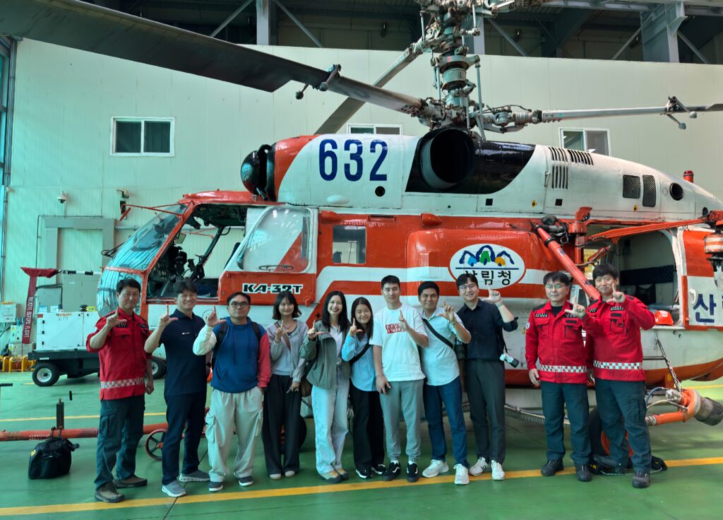 1. Introduction to Aerial Wildfire Suppression Operations – Fellows were introduced to Korea’s highly coordinated wildfire response system, with a particular focus on aerial suppression strategies that play a critical role in rapid and large-scale fire containment. Korea Helitack operates a diverse fleet of helicopters, each equipped with specialized capabilities for different wildfire scenarios—ranging from water bombing to rapid personnel deployment in remote or rugged terrain. This session provided insights into how aerial operations are integrated with ground-based efforts, showcasing the efficiency and effectiveness of Korea’s multi-tiered wildfire management approach.