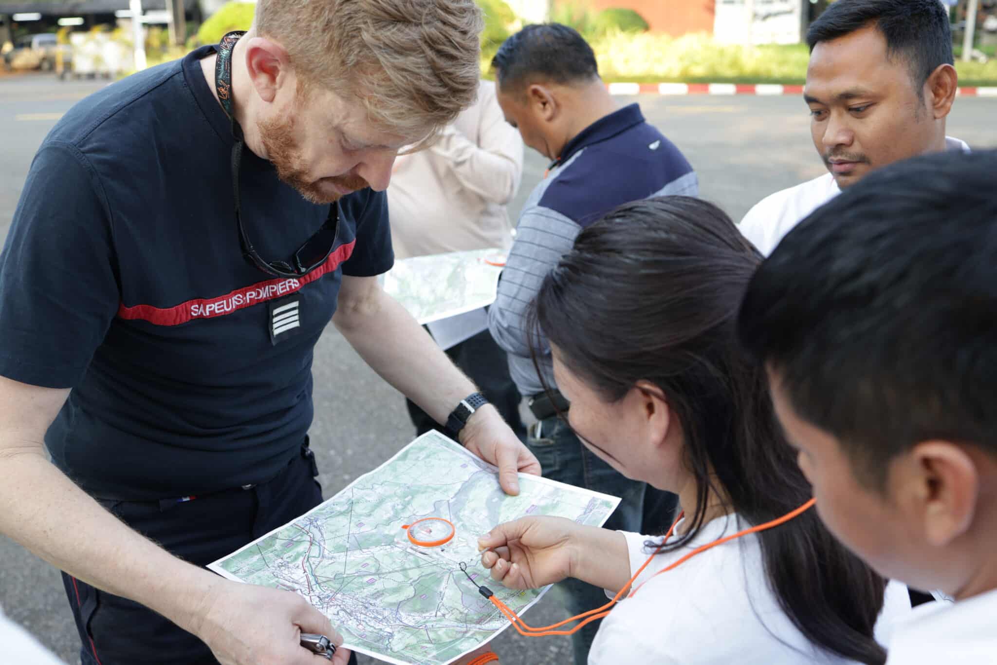 Compass Navigation Exercise: Recognizing the challenges of navigating dense forest areas where communication equipment may be unreliable, participants practiced using a compass for directional awareness. They learned essential skills such as determining bearings, estimating distances, and orienting themselves without GPS assistance. This training prepared them for real-world scenarios where firefighters must navigate efficiently in remote, fire-prone regions to execute suppression operations effectively.