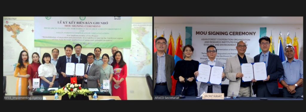 On 11 May 2022, AFoCO concluded the online MoU signing ceremony for the launch of the new AFoCO project in Viet Nam titled: Rehabilitation of Degraded and Potentially Deserted Forest Land in the Northwest Region of Viet Nam through Application of Integrated Technical Measures (AFoCO/031/2022).