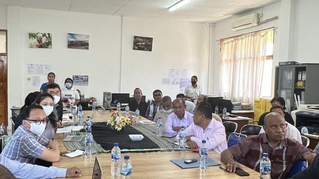 The Project Inception Meeting (PIM) and the 1st Project Steering Committee (PSC) Meeting was held upon the signing of the MoU. The meetings were attended by the four national directors of the GDFCIP from each department, and were also attended by municipal directors and representatives from Manatuto and Aileu. The Chair of the Meeting, Mr. Raimundo Mau, National Focal Point of AFoCO for Timor-Leste and the Director General of the GDFCIP welcomed all the participants to the meeting and expressed sincere gratitude that the project has finally been launched. Mr. Adalfredo do Rosarino Ferreira, Project Manager of AFoCO/026/2021 presented the overall work and budget plan for the project, where fencing construction and consultations with communities in the two municipalities were the major activities for 2022.