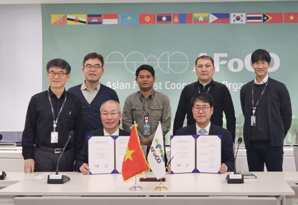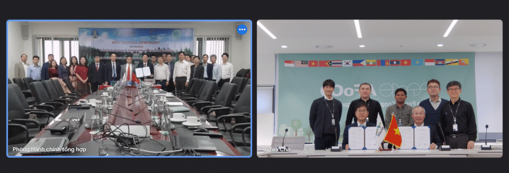 The MoU was signed by the Vice Executive Director of AFoCO, Mr. Jin Sunpil and the President of VNUF, Professor Pham Van Dien. During the congratulatory remark from the Vice Executive Director (VED) of AFoCO, he emphasized that the project symolizes a collaborative effort foresting regional cooperation and advancing evnvironmental sustainability. Specifically, the project will work on the followings objectives: