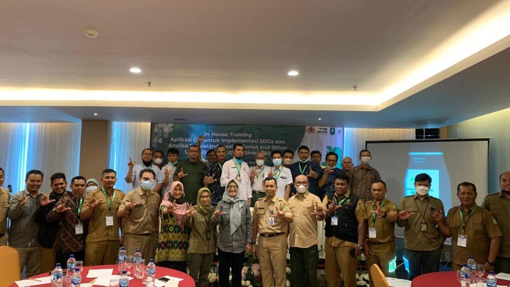September 1, 2022, Riau Province, Indonesia — As part of the AFoCO-Indonesia project on ‘Innovative Solutions for Climate Change and Biodiversity Landscape Strategy to Support SDGs in Indonesia (AFoCO/023/2021)‘, a three-day training targeted at GIS field practitioners operator was held in Pekanbaru City, Riau Province. The ‘GIS Training for SDGs Implementation and Spatial Analysis of FOLU Net Sink 2030’ was attended by some 20 participants from Forest Management Units (FMUs) and local forestry offices across Riau Province. With the aims of enhancing the capacities of FMUs in utilizing GIS tools and imparting an understanding of the concepts and methods applied in the development of Indonesia’s Forestry and Other Land Use (FOLU) Net Sink 2030, the training is one of the solutions to promote sustainable forest management practices and improve the capacities of FMUs and local stakeholders in mitigating climate change and increasing landscape biodiversity.