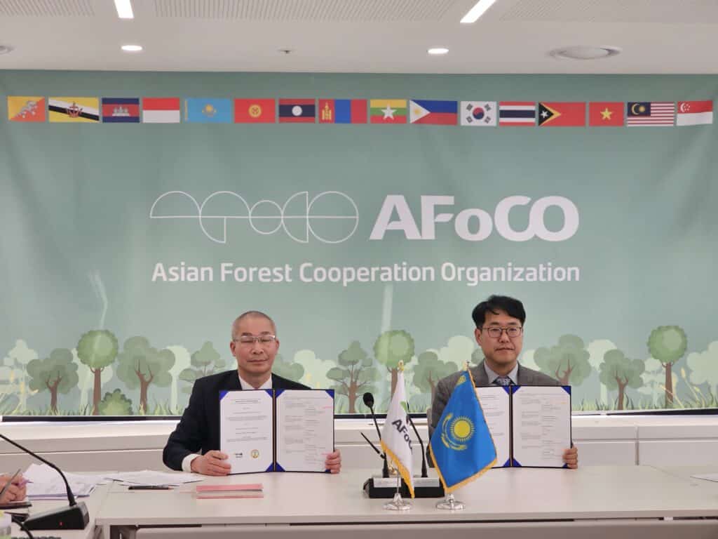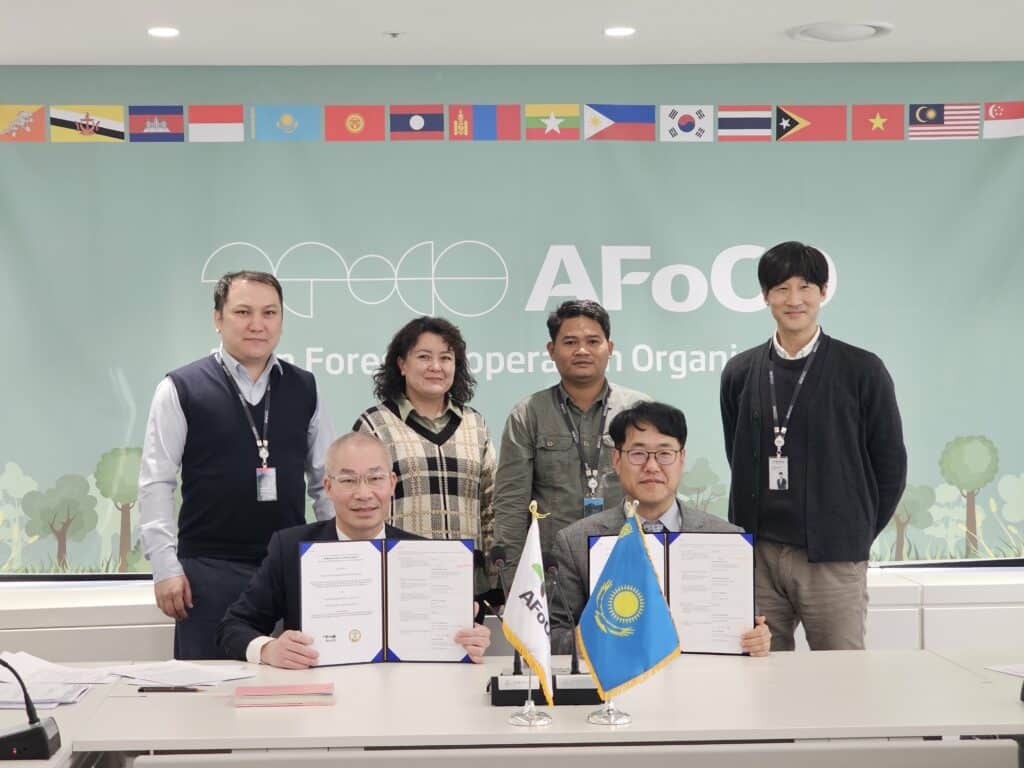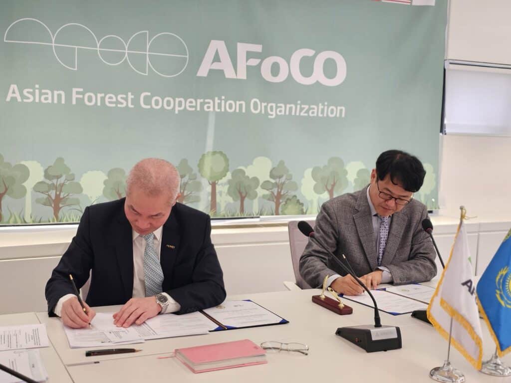 18 March 2024 — the AFoCO Secretariat signed the Memorandum of Understanding (MoU) with the Republican Forest Selection Seed Center of the Forestry and Wildlife Committee of the Ministry of Ecology and Natural Resources of the Republic of Kazakhstan and the public foundation Ulan Plus for the project titled: Technology and Capacity Enhancement for Massive Production of Quality Planting Materials to Support National Forestration Goals in Kazakhstan (AFoCO/044/2024).