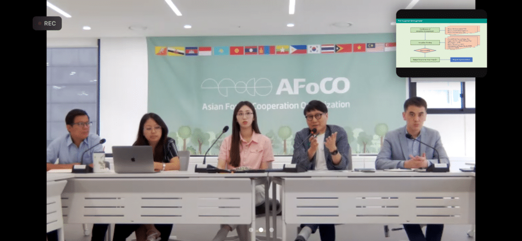 16 June 2023 – In a concerted effort to ensure effective project implementation, the Asian Forest Cooperation Organization (AFoCO) organized an online webinar on June 16, focusing on the Project Implementation Plan (PIP) matrix and pre-inception arrangements for the Non-Timber Forest Products (NTFP) Project. Attended by 33 participants from 12 countries, including country project managers and coordinators, as well as the 5 staff members from the AFoCO Secretariat, the webinar aimed to align all country project teams with the PIP Matrix and inception processes. The participants represented a diverse range of countries, namely Bhutan, Brunei, Cambodia, Indonesia, Kazakhstan, Lao PDR, Mongolia, Myanmar, the Philippines, the Republic of Korea, Thailand, Timor-Leste, and Vietnam.