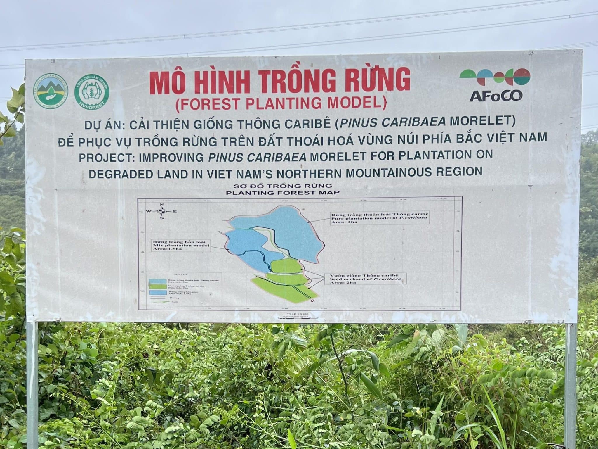 December 1, 2022 — the project site for AFoCO/013/2020, Improving Pinus caribaea Morelet for Plantation on Degraded Land in Viet Nam’s Northern Mountainous Region was visited and monitored by the AFoCO Secretariat, following the 3rd Project Steering Committee (PSC) Meeting that was held the day before of the monitoring trip. The plantation sites that were visited are all located in the vicinity of the Forest Science Centre of North-Eastern Viet Nam (FSNE) in Vin Phuc Province. Four different plantation models were visited: