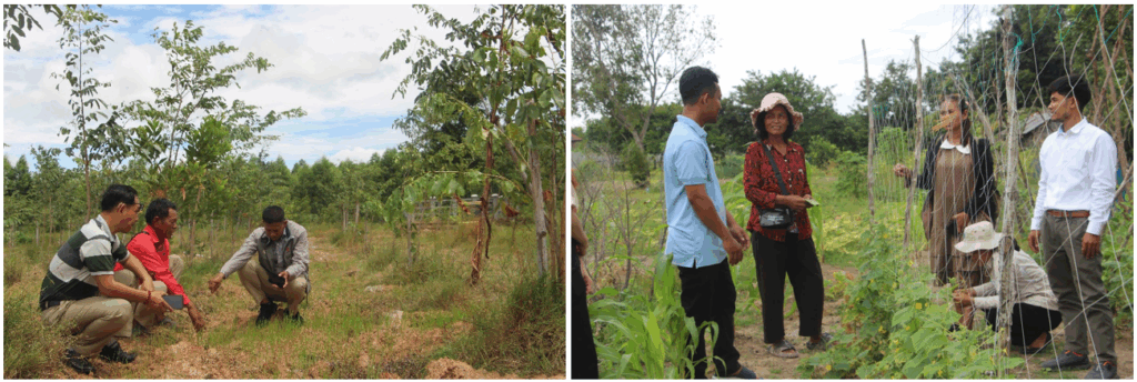 Rolling out a monitoring plan: A project team in collaboration with key stakeholders including Kampong Chhnang Provincial Department of Agriculture, Forestry and Fisheries (PDAFF) often conduct monitoring visits at the demonstration sites. The primary objective of the monitoring visit is to collect data, monitor in accordance with plan, review techniques to be applied, and evaluate whether the demonstration sites conduct in line with the design idea or not. Immediate action would be taken if technical issues arise. Notwithstanding, the project leaves a decision for farmers to make for any deviation or modification of crop planting for an acceptable reason, and the plan, thus, should be modified in terms of resources and inputs applied.