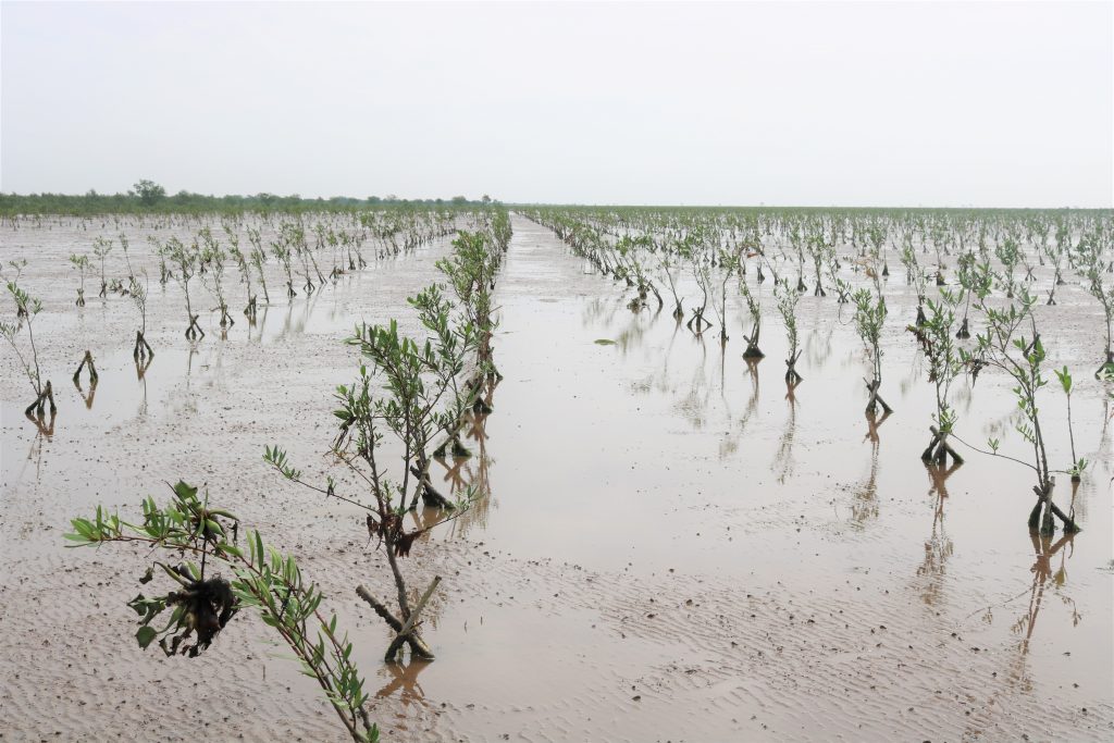 According to some project reports, risks for mangrove plantation failures (survival rate estimated around 50 %) were very high primarily because of poor soils, high tides, shipworm infestations, and frequent sea storms. These seedlings were certified by RIFEE based on the standards set in the current regulations and technical guidelines. The seedlings were planted at a distance of 2 x 3 meters, approximately 1,667 seedlings/h.