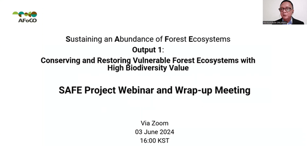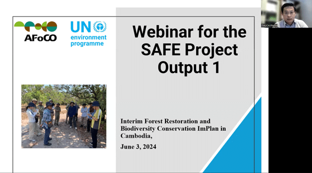 On June 3, 2024, the webinar for Output 1 of the “Sustaining an Abundance of Forest and Ecosystems (SAFE)” project was successfully held. The event saw active participation from various relevant stakeholders, including representatives from UNEP, the AFoCO Project team, In-country consultants, the Lead Consultant, and government partners from each country. This webinar focused on presenting the Interim Forest Restoration and Biodiversity Conservation Implementation Plans for Cambodia, Lao PDR, and Viet Nam. The aim was to showcase the comprehensive methodology and deliverables.