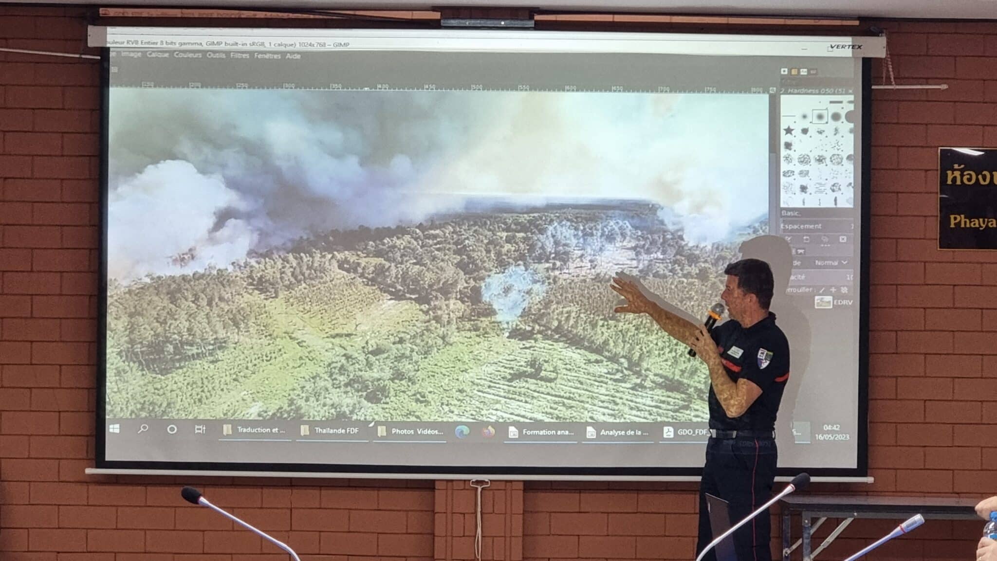 With support from the French Ministry of Europe and Foreign Affairs, the trainees are able to learn and gain insight from three experts — Ms. Antonella Massaiu, Mr. Bruno Chitussi, and Mr. Rémi Lassoureille — who have 15 to 20 years of experience in dealing with forest fires. As the main AFoCO RETC trainer for forest fire management, Dr. Veerachai Tanpipat, Senior Expert and Senior Expert and Advisor at Upper ASEAN Wildland Fire Special Research Unit, Forestry Research Center, will also be sharing insight and knowledge on the Asian context of forest fire issues.