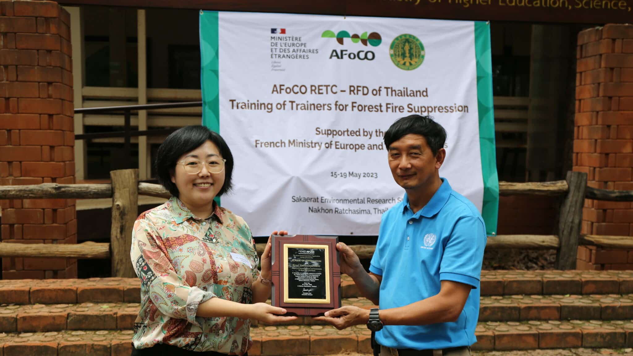 May 15-19, 2023 — The AFoCO Regional Education and Training Center (RETC), the Royal Forest Department of Thailand, and the French Embassy in Bangkok join hands to collaborate, develop and implement a joint capacity-building activity entitled “Training of Trainers for Forest Fire Suppression” at the Sakaerat Environmental Research Station and Wang Nam Khiao Forestry Research and Student Training Station in Nakhon Ratchasima Province, Thailand. The training course welcomed 24 participants from 14 AFoCO member countries, including Bhutan, Cambodia, Indonesia, Kazakhstan, Kyrgyzstan, Mongolia, Myanmar, the Philippines, the Republic of Korea, Thailand, Timor-Leste, and Viet Nam.