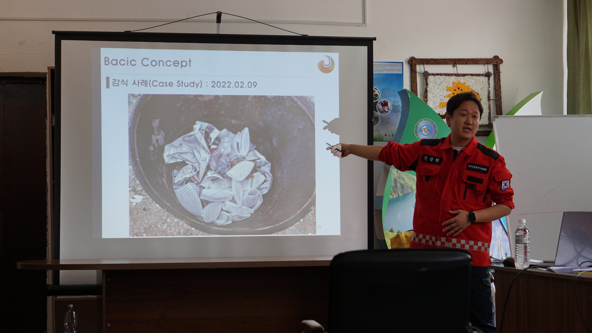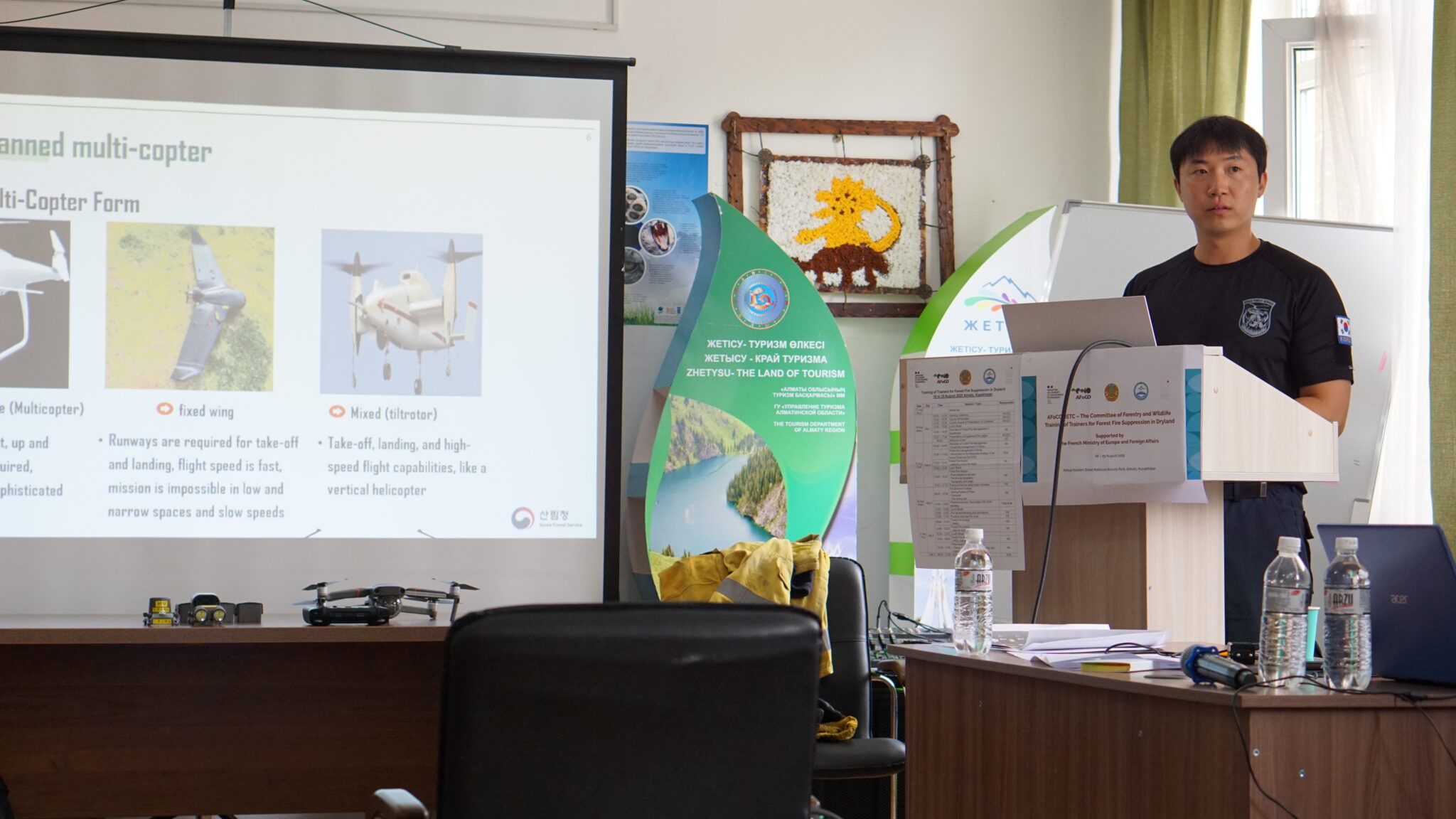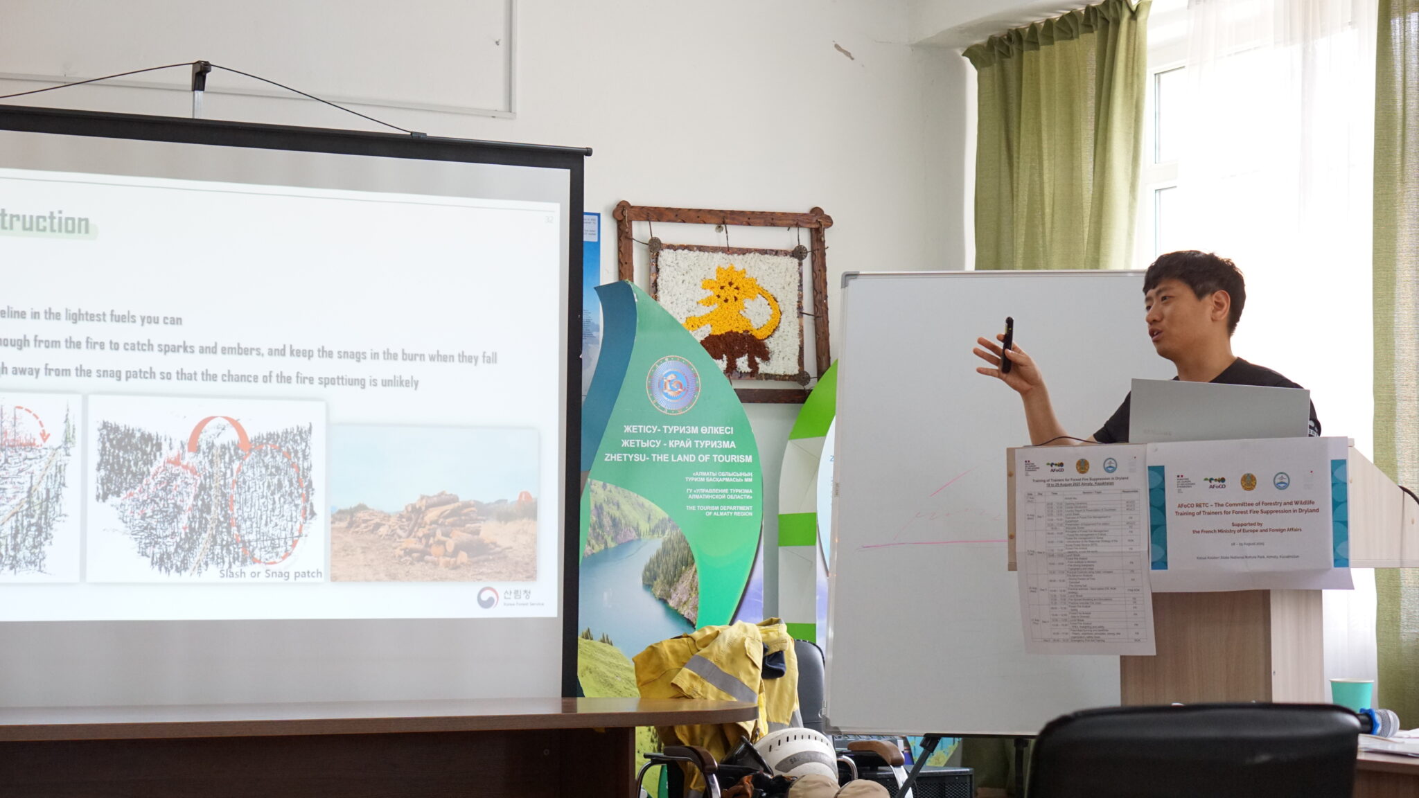 The training also benefited from the participation of an expert from the Korea Forest Fire Management Service Association, who contributed specialized knowledge to the program. The expert delivered a lecture on fire investigation and analysis, focusing on how to identify ignition points and scientifically determine the direct causes of wildfires after an outbreak. Drawing on multiple case studies of large-scale forest fires in Korea, the expert introduced systematic investigation methods and shared real-world experiences. This not only provided participants with practical insights but also encouraged active engagement and discussion throughout the sessions.