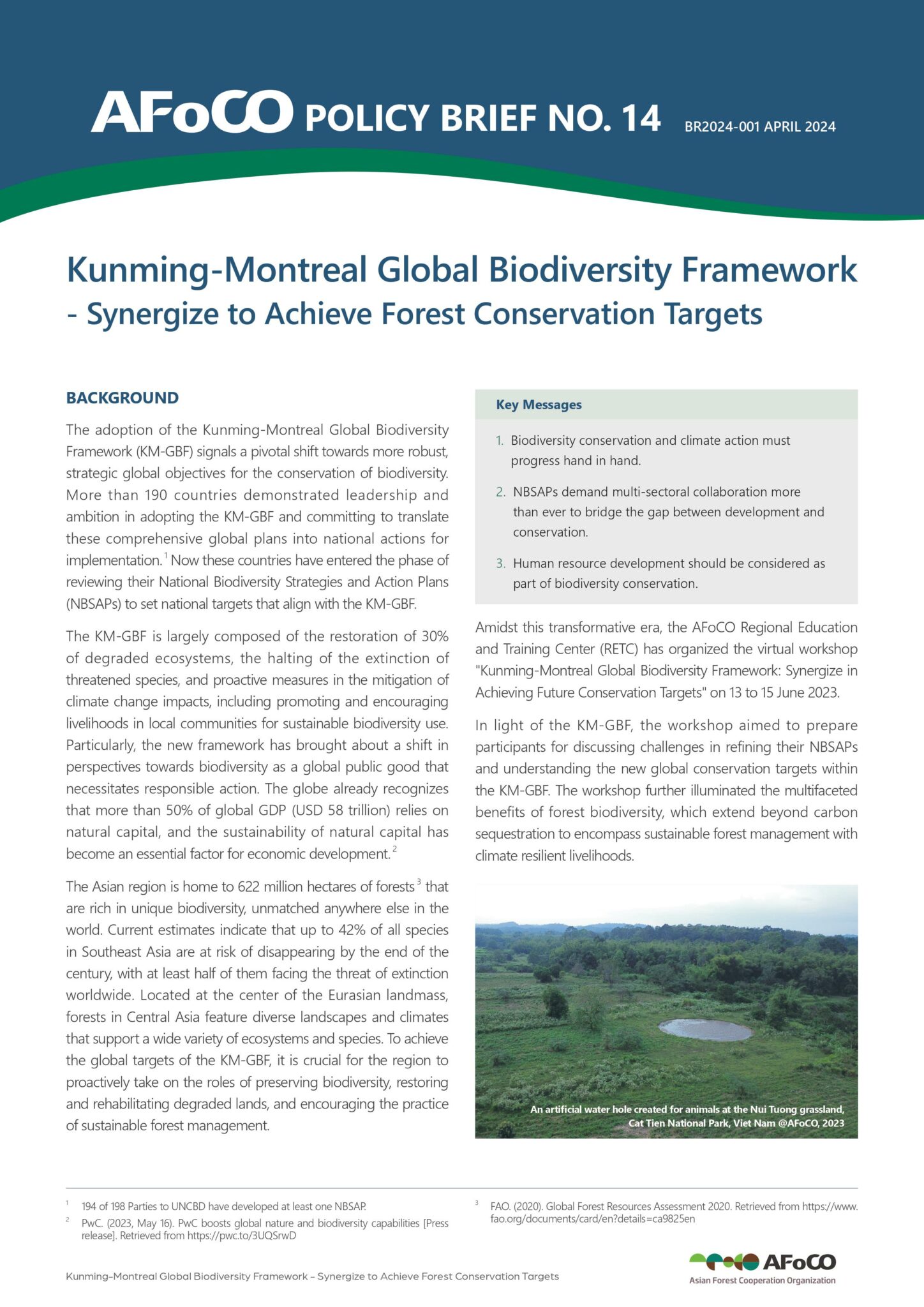 The adoption of the Kunming-Montreal Global Biodiversity Framework (KM-GBF) signals a pivotal shift towards more robust, strategic global objectives for the conservation of biodiversity. More than 190 countries demonstrated leadership and ambition in adopting the KM-GBF and committing to translate these comprehensive global plans into national actions for implementation. 1 Now these countries have entered the phase of reviewing their National Biodiversity Strategies and Action Plans (NBSAPs) to set national targets that align with the KM-GBF. To achieve the global targets of the KM-GBF, it is crucial for the region to proactively take on the roles of preserving biodiversity, restoring and rehabilitating degraded lands, and encouraging the practice of sustainable forest management.